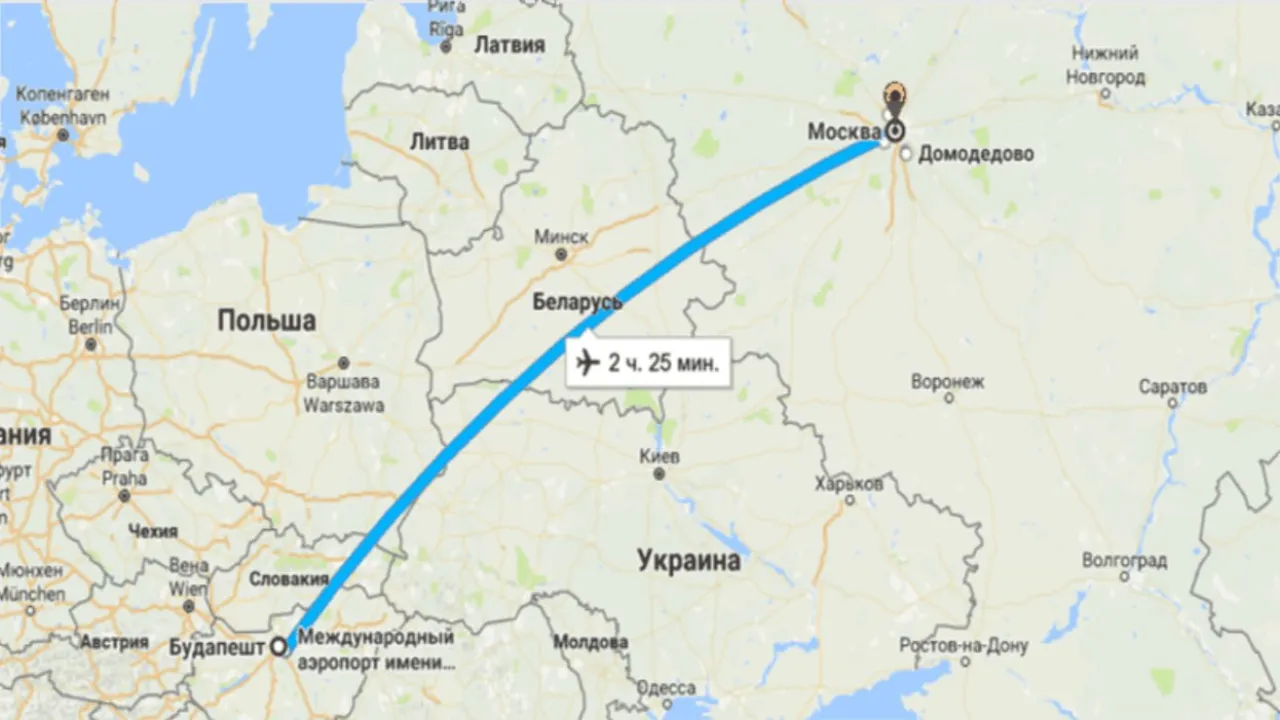 Маршрут Москва - Будапешт. Скрин hotelprojector.ru