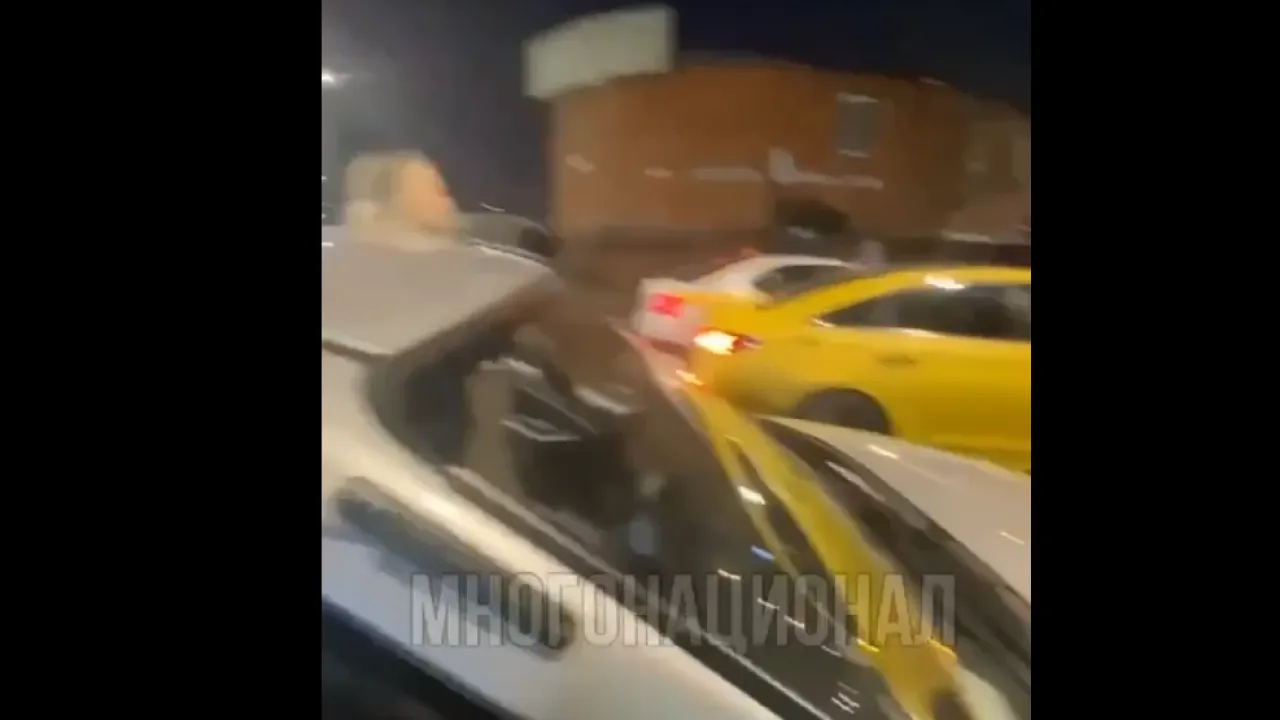 Таксист бросился на недовольных с баллонным ключом. Скрин виде в тг-канале @mnogonazi