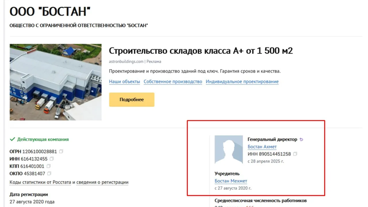 Директор Ахмет, учредитель Мехмет. Оба Бостаны. Скриншот: chekko