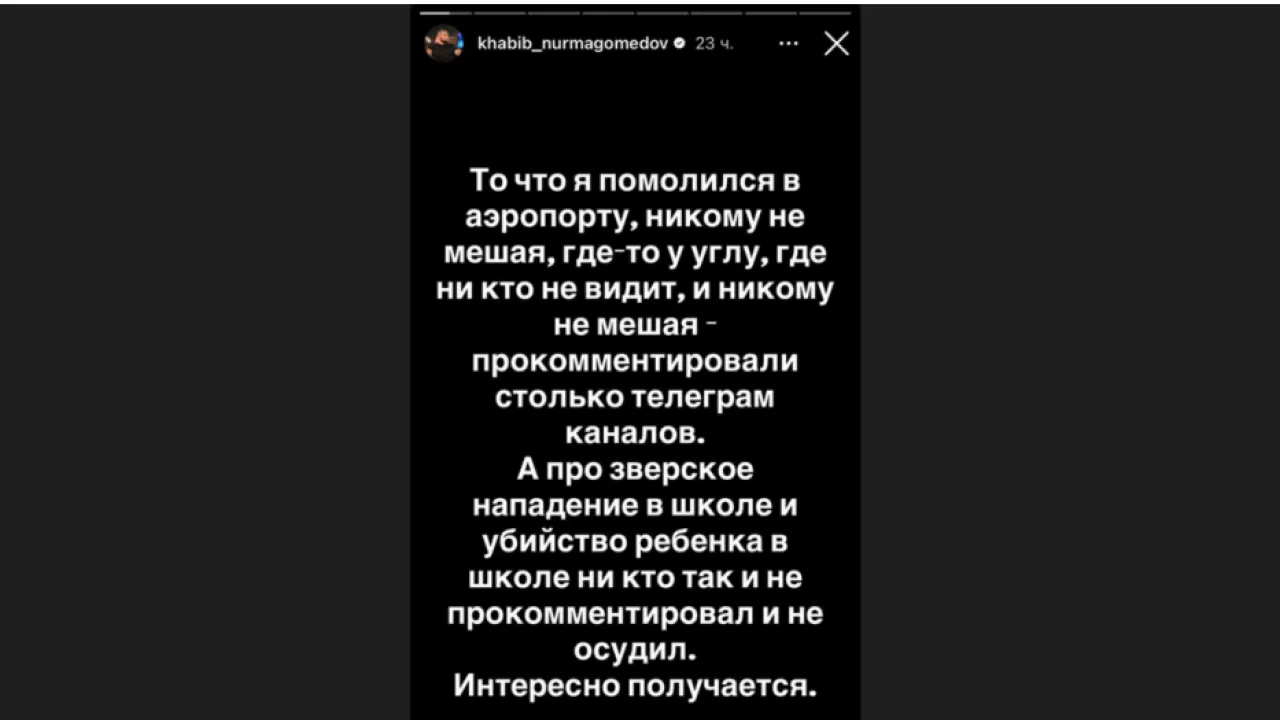 То, что я помолился в аэропорту, где-то в углу, никому не мешая, где никто не видит, прокомментировали столько телеграм-каналов. А про зверское нападение и убийство ребёнка в школе никто так и не прокомментировал и не осудил. Интересно получается.