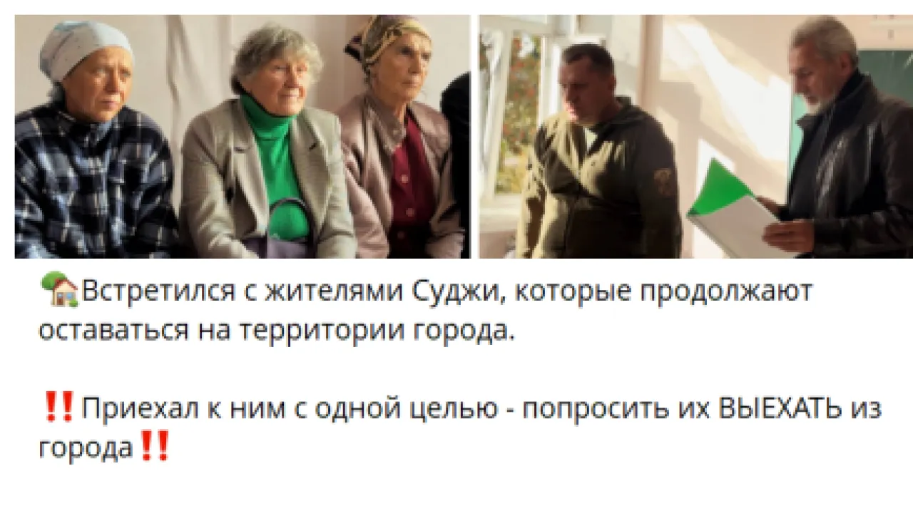 Бабушки смотрели на чиновника безучастно: никуда они не поедут. Скрин тг-канала rodnaya_sudzha