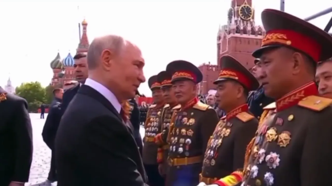 Путин и генералы КНДР на Красной площади. Скрина видео.