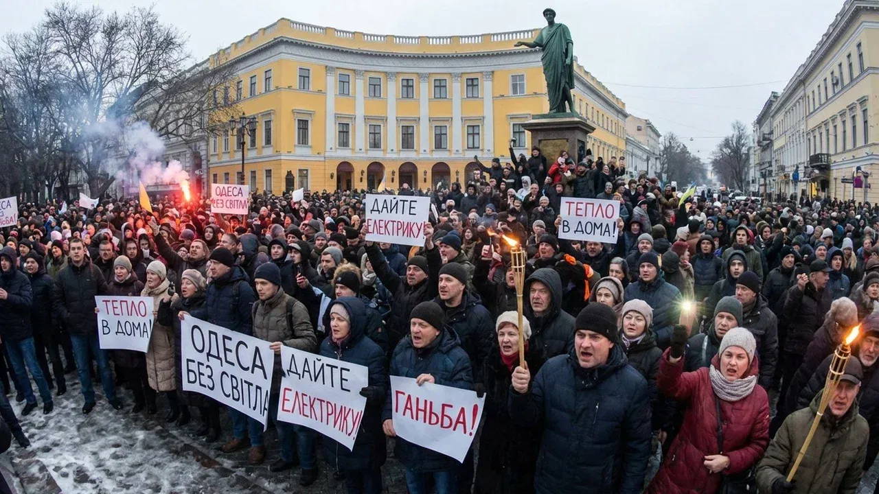 Митинги, начавшиеся из-за разрушенных ТЭЦ и подстанций, поначалу были мирными. Люди отказывались работать, перекрывали дороги, включая те, что предназначены для спецтранспорта. Но ситуация быстро ухудшилась. Украинцы обвинили в проблемах Зеленского и его окружение.