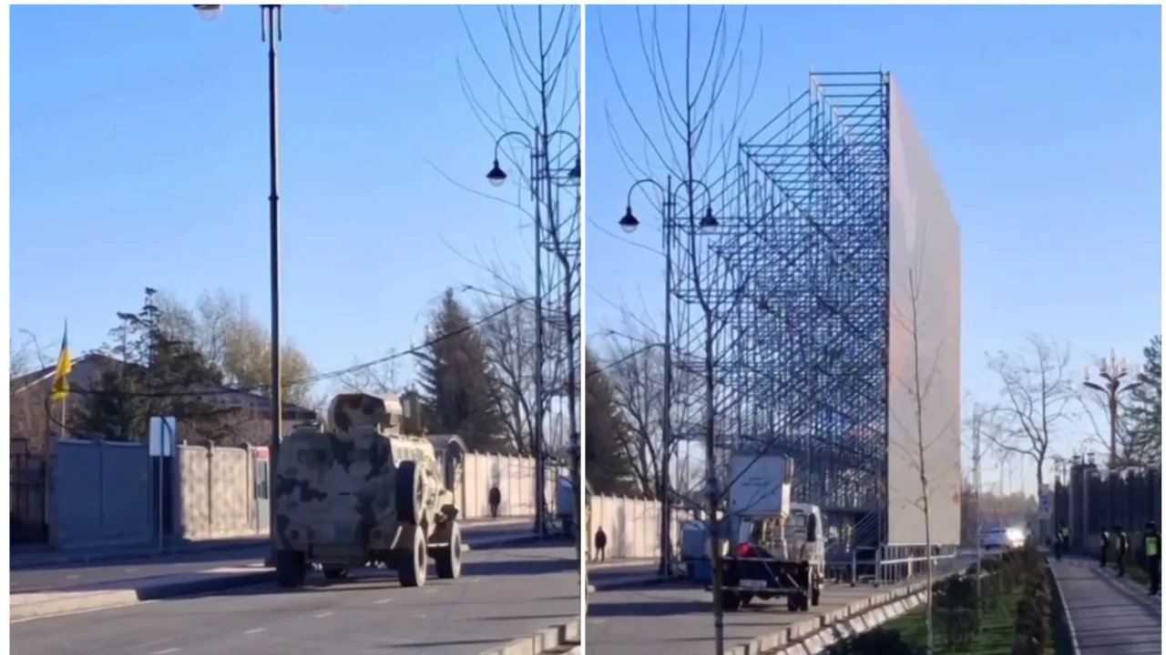 Посольство Украины в Бишкеке расположено рядом с резиденцией президента Киргизии "Ынтымак Ордо" – всего в 200 м. На время мероприятий с участием президента России Владимира Путина напротив здания установили огромный LED-экран.