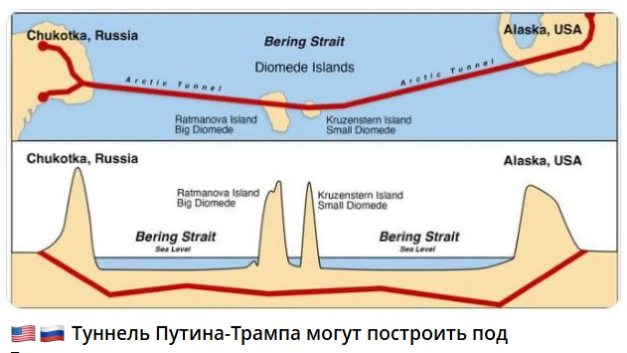 Вторая схема касалась планов сегодняшнего дня, предложение было обновлено в связи с новыми политическими реалиями. Современный план – прорыть тоннель, соединяющий Россию и США, под Беринговым проливом, назвав его "Путин – Трамп туннель".