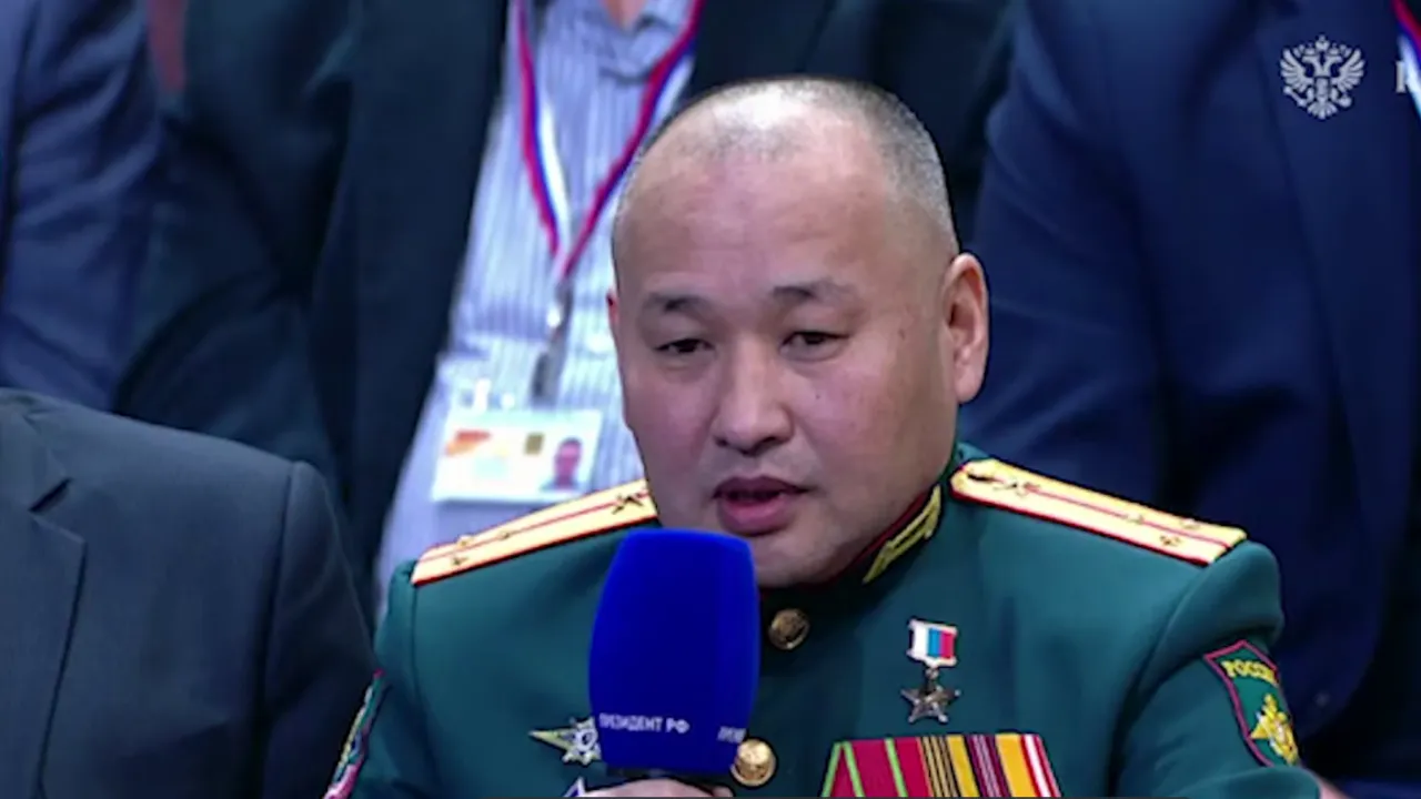 Во время "Прямой линии" Владимир Путин дал слово командиру штурмовой бригады, Герою России Нарану Очир-Горяеву. Глава России попросил рассказать подробности о взятии Северска.