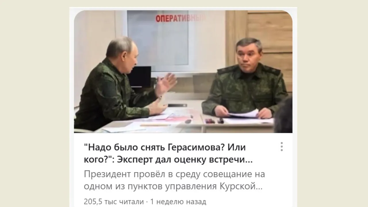 – Я не говорил, что это антикризисный пиар – конкретно Герасимова. В Генштабе много фигур. Возможно, какая-то из них сочла, что пришло время готовить "народное мнение" к отставке шефа...