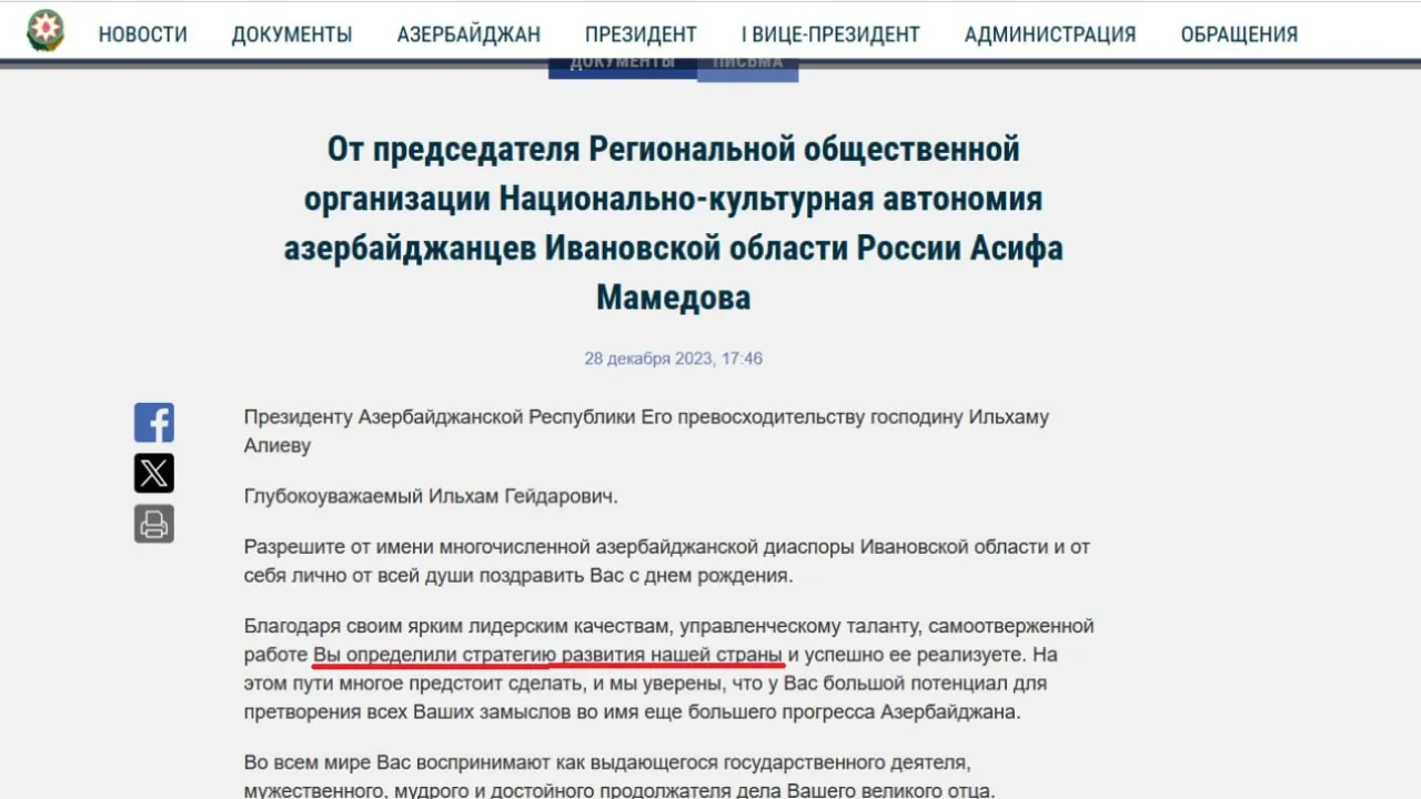 Блогеры быстро обнаружили подобострастное письмо Мамедова как главы диаспоры в адрес Ильхама Алиева. И напомнили, что все азербайджанские диаспоры в России действуют под эгидой государственного комитета по работе с диаспорой Азербайджана – свои из Баку.
