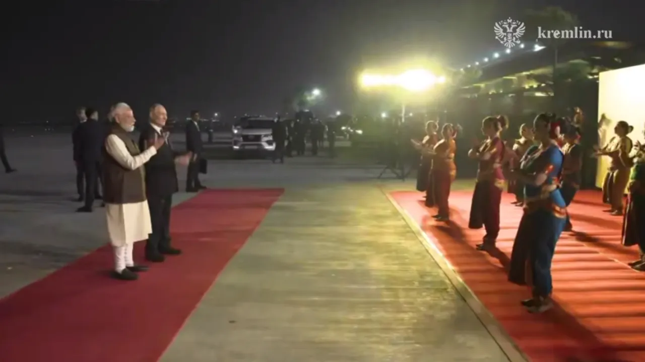 Неторопливо пройдя по красной дорожке, Моди и Путин ненадолго задержались около девушек в национальных костюмах, которые исполняли традиционный индийский танец. Затем высокий гость вместе с премьер-министром сели в автомобиль Моди. Визит начался с неофициального общения тет-а-тет, без переводчиков.