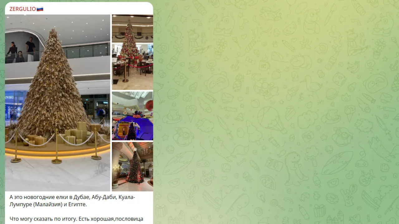Абсурдность происходящего становится особенно наглядной при взгляде на происходящее перед Новым годом в бывших советских республиках и других странах, где ислам исповедует большая часть населения. Известный блогер и общественник из Екатеринбурга Сергей Колясников (Zergulio) опубликовал в своем тг-канале более двух десятков фотографий, которые ему прислали подписчики.