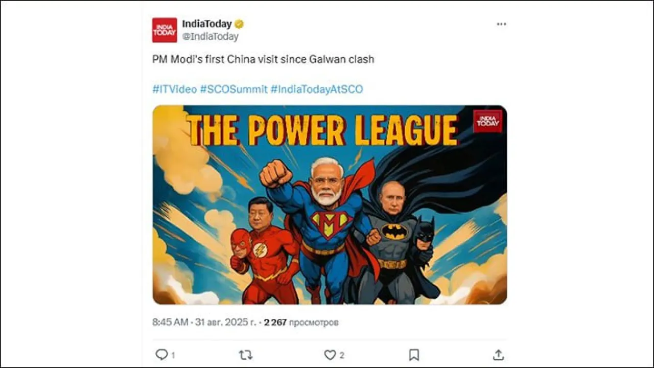 –Пожалуй, да. Хотя встречи глав государств еще продолжаются, но общий итог всего саммита уже очевиден: старый миропорядок трещит по швам, рождается нечто новое. На это чутко откликнулись индийские СМИ, которые сейчас активно рассматривают перспективы переориентации с Запада на Восток. Кстати, из издания в издание кочует весьма показательная иллюстрация под названием "Лига силы". На ней Владимир Путин, Си Цзиньпин и Нарендра Моди изображены в образах супергероев американских комиксов – Бэтмена, Флэша и Супермена. Хоть образы и западные, но они очень точно отражают суть происходящего. Как отмечает India Today, лидеры демонстрировали высшую степень товарищества: "Пока другие главы государств ждали, эта троица долго болтала, обмениваясь рукопожатиями и смеясь". Эта картинка задала тон всему саммиту.