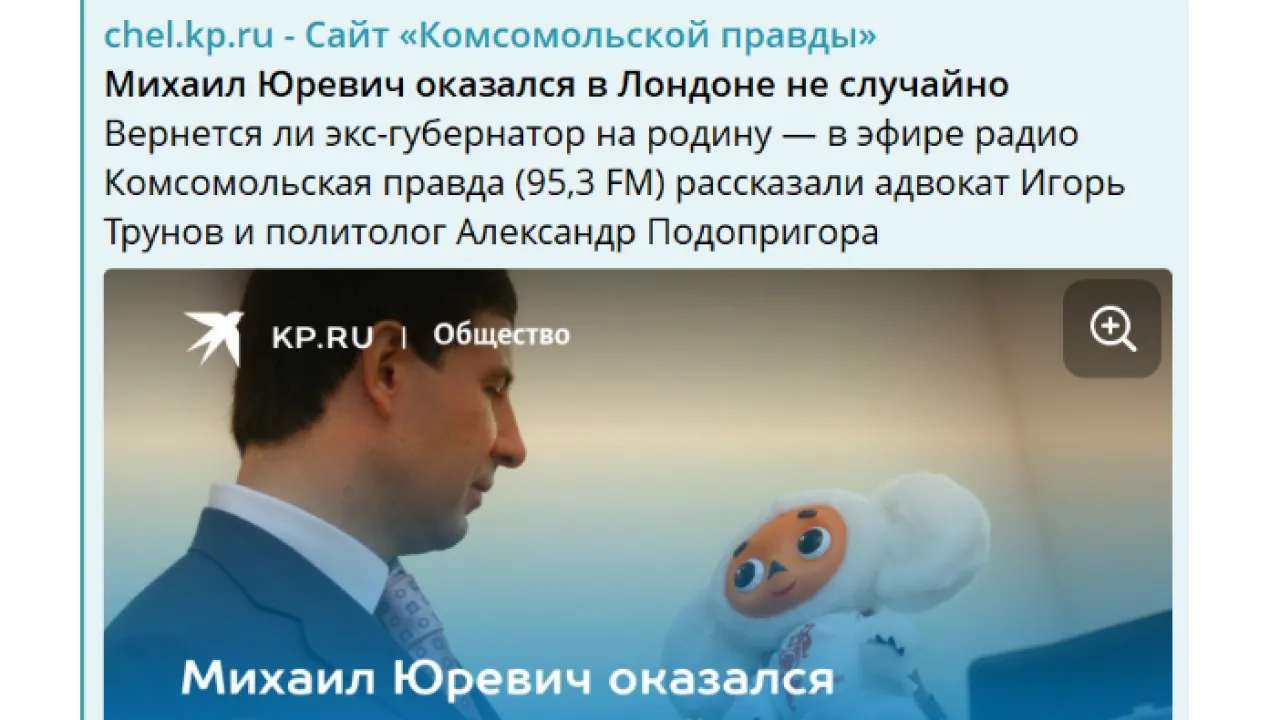 В 2017 году Михаил Юревич стал фигурантом уголовного дела, его обвинили в получении взяток в размере 26 млн рублей. Это потом сумма, как снежный ком, выросла до 3,4 млрд. Но на допросы бывший губернатор Челябинской области не явился. Письменно уведомил СК, что находится в Израиле.