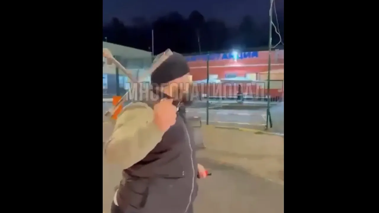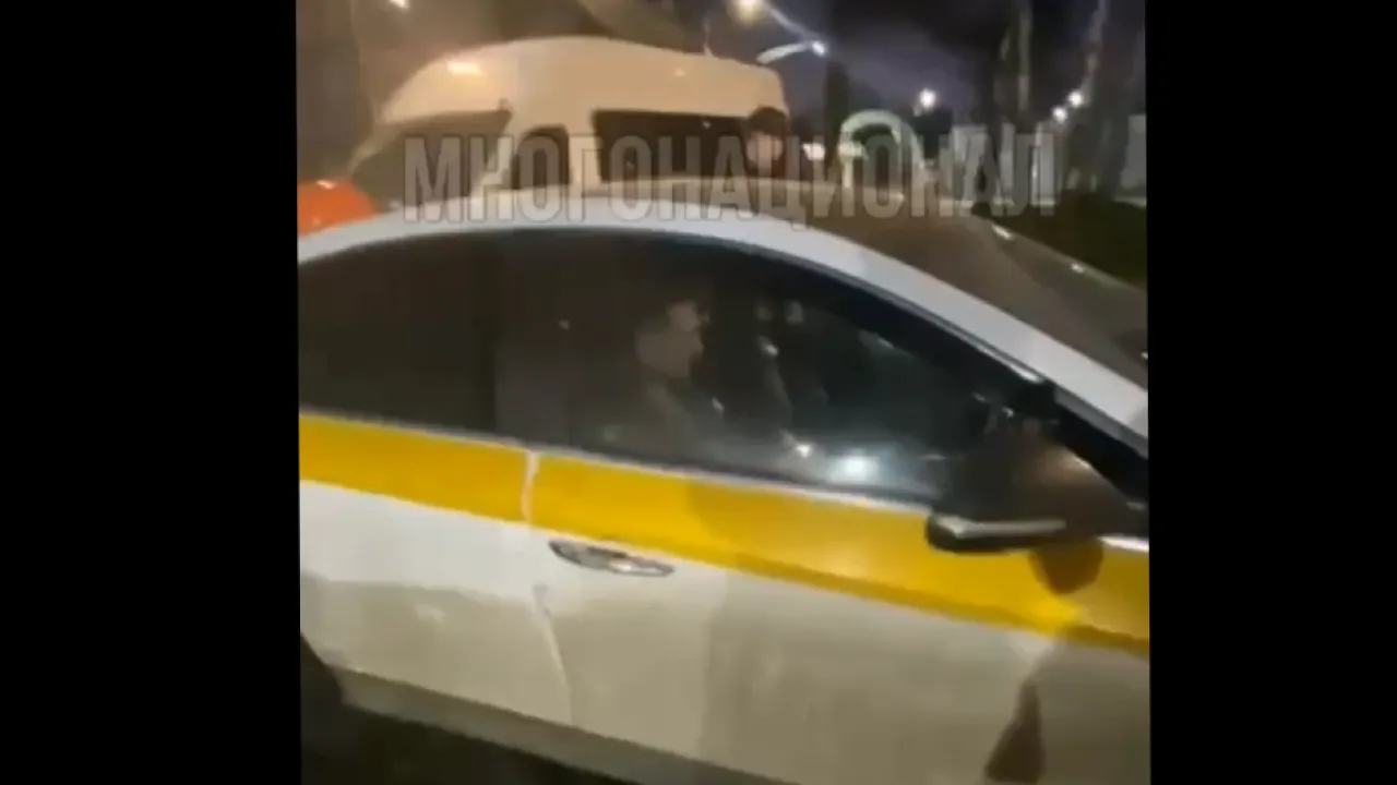 Таксист бросился на недовольных с баллонным ключом. Скрин виде в тг-канале @mnogonazi