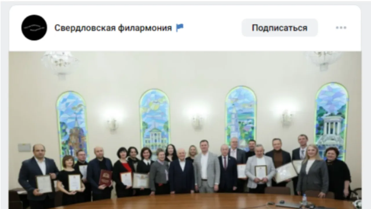 В Свердловской области наградили артистов, внёсших особый вклад в концертную и просветительскую деятельность. Местный министр культуры Илья Марков назвал всех, кто оказался с наградами на групповом фото, "абсолютным флагманом и визитной карточкой культурной жизни региона". Причём это мнение, по его словам, "сотен тысяч счастливых зрителей". Однако, как только фото с чиновниками и артистами попало в Сеть, то возник скандал.
