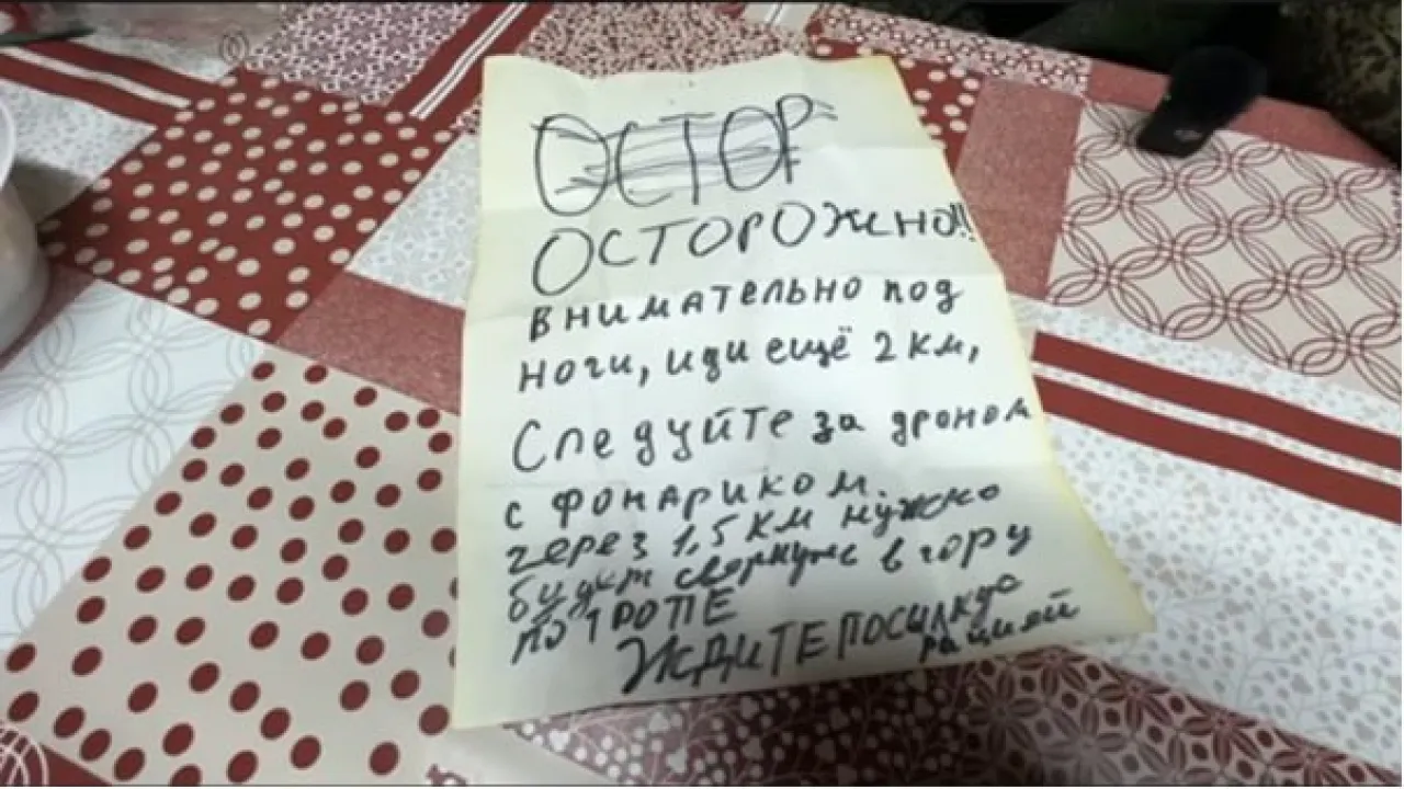 Через три дня решили попытаться выйти к русским вновь. Когда к ним вновь подлетел дрон, то и сын, и она уже попрощались с жизнью. В этот момент паренёк достал из кармана медицинский бинт и принялся им махать. Затем достал быстро тетрадку и написал ручкой: