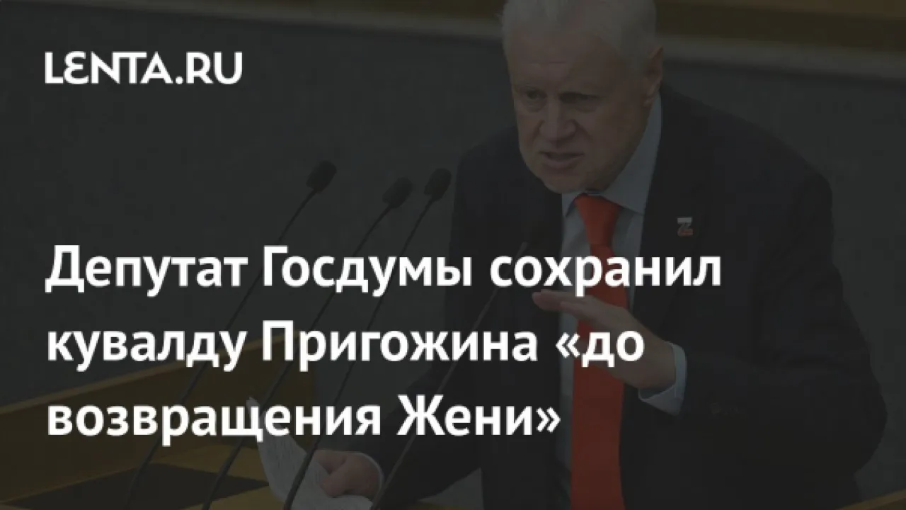 Подарил ему эту штуковину покойный Евгений Пригожин, основатель ЧВК "Вагнер". Теперь эта кувалда у Миронова в кабинете. Лежит на подоконнике, у окна. Ждет, говорит Миронов, возвращения Пригожина: