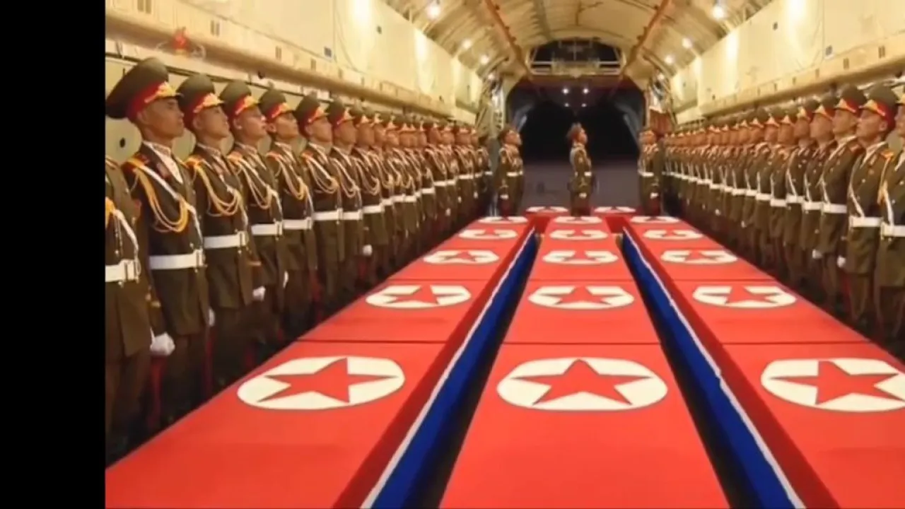 Надо сказать, что Ким еще до парада показал Западу свое отношение к его санкциям. На прошлой неделе Северная Корея торжественно встретила тела павших под Курском воинов. Автор канала "Баудолино" обратил внимание не два необычных момента.