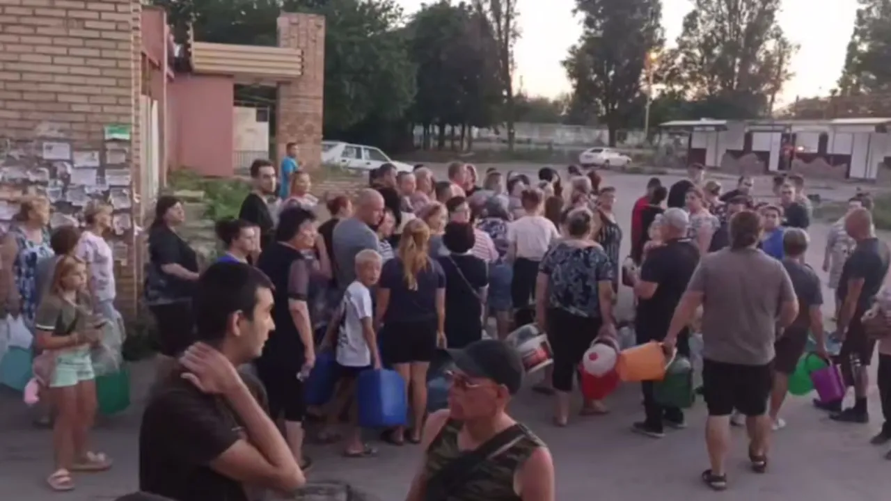 Очередь за водой, Калининский микрорайон. Скрин: "Жизнь ДНР".