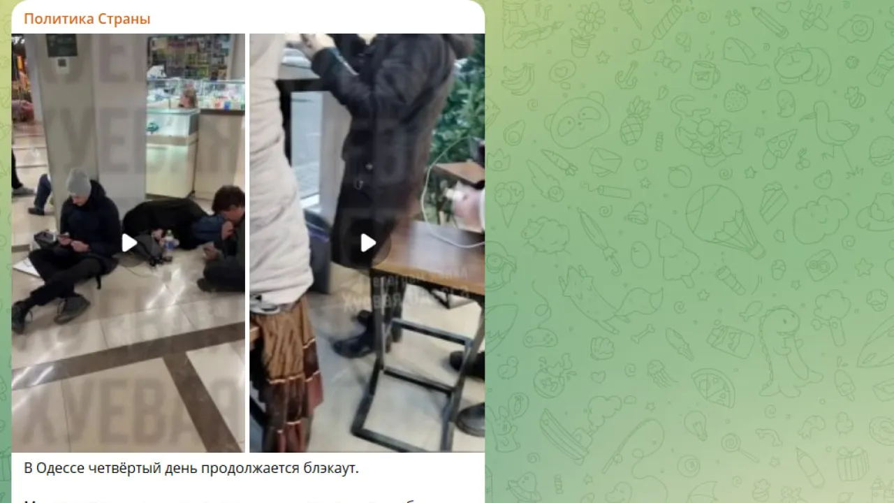 Во вражеских пабликах публикуют кадры из торговых центров: люди уже дерутся за розетки, чтобы зарядить телефон. Поверить невозможно – Россия всё-таки сделала это с Одессой: блэкаут продолжается несколько суток подряд.