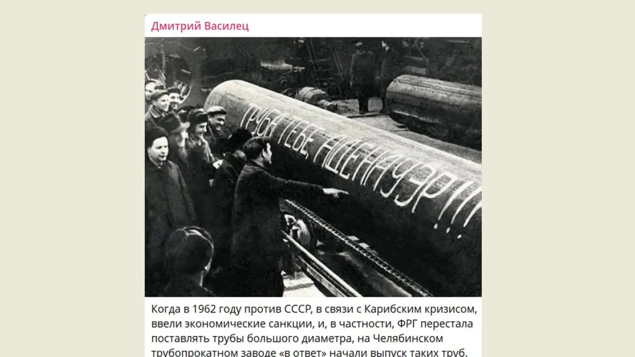И тогда на ЧТПЗ выпустили трубы нужного диаметра. Хулиганская надпись на черном стальном боку была сначала с матерком. Потом ее подкорректировали. Мир облетел снимок фотокора "Челябинского рабочего" Евгения Ткаченко. Вот и сейчас хочется сказать коллективному "Аденауэру" то же самое.