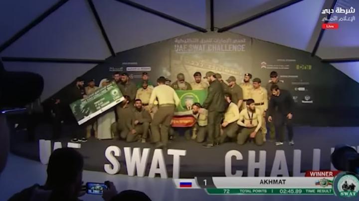 Сын главы Чечни Адам Кадыров получил новую награду – теперь за соревнования спецназа в Дубае UAE SWAT Challenge. Участия в соревнованиях он не принимал, но активно поддерживал свою команду с трибун. Чечня выступала на соревнованиях под своим флагом, как суверенное государство. Флаг России решили опустить и вынести за скобки "исламского мира".