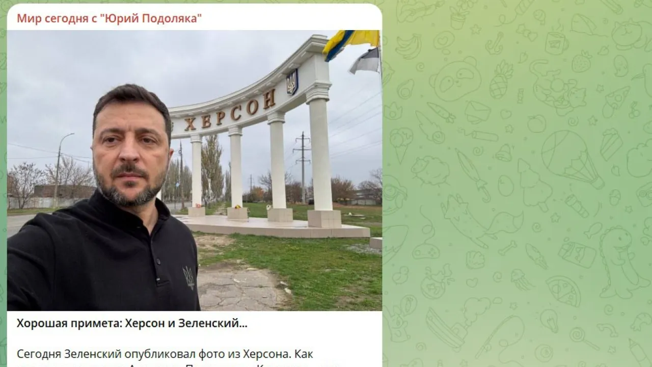 А в это время Зеленский публикует селфи на фоне въезда в Херсон. В военном сегменте Рунета сразу расценили это как сигнал – с городом Украине придётся попрощаться. Фото из города довело до слёз. Само собой, до слёз от смеха. Военный блогер Юрий Подоляка пишет: