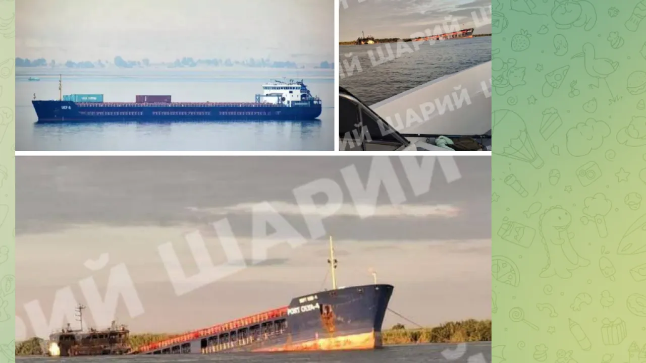 Наши власти пишут, что обломки сбитого беспилотника "повредили судно". Блогер Анатолий Шарий даёт фото в своём канале и замечает, что для такого груза данное старое судно не годится.