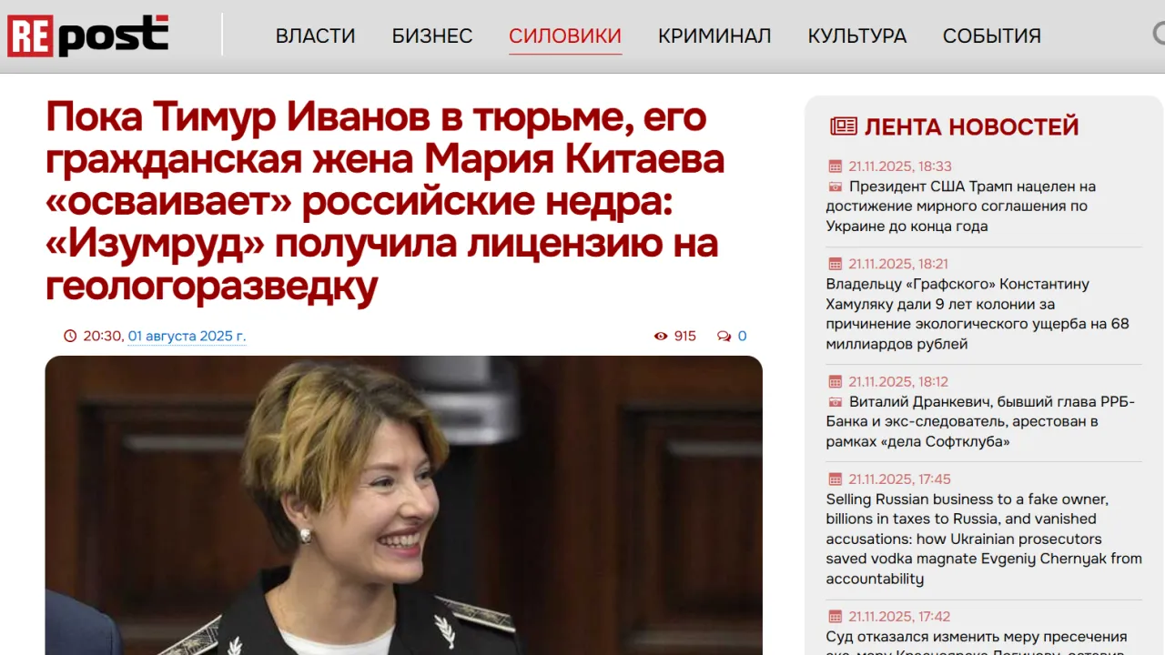 Активы разжалованного генерала арестованы, но дело его живет. Захарова не бедствует. Китаева владеет 37% акций в новом проекте. Кстати, в 2019 году Forbes признавал Иванова богатейшим силовиком России: только официальный доход за 2018 год составил более 130 млн рублей.