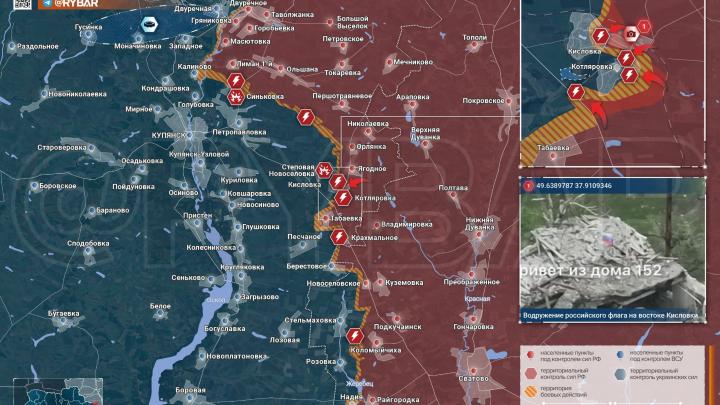 ВС России установили флаг в Кисловке. Этот участок фронта "проснулся" на днях, наши войска перешли в наступление. Сейчас русская армия расширяет зону контроля в Кисловке и вокруг населенного пункта.