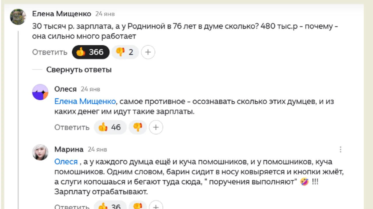 "Зарплата Родниной в Госдуме – 480 тыс. руб., а у медика – 30 тыс. руб.": Нам нужны такие депутаты?